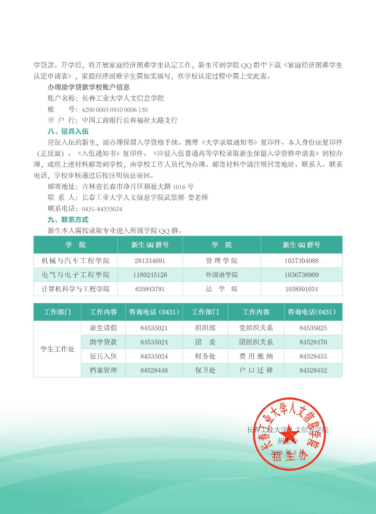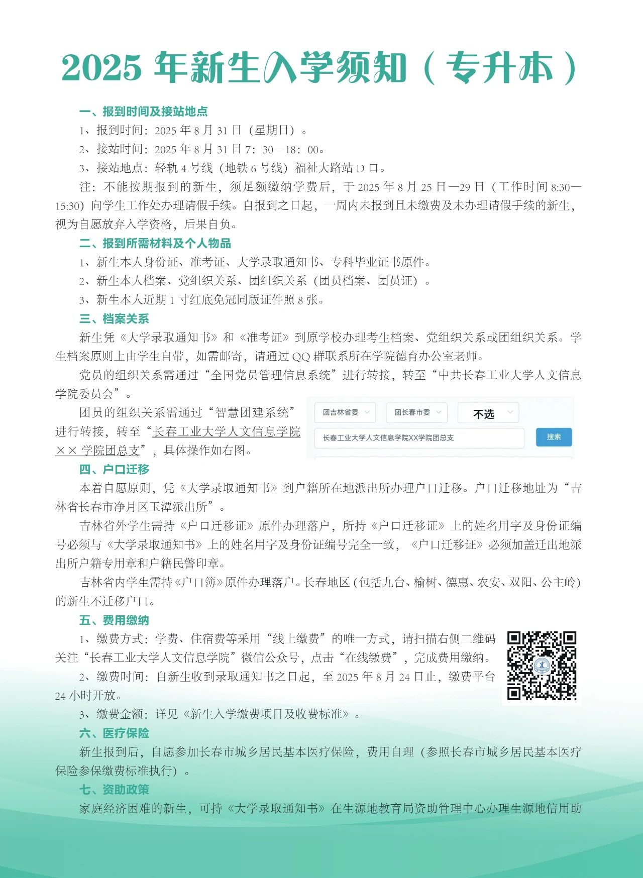 长春工业大学人文信息学院2025年新生入学须知(专升本考生)