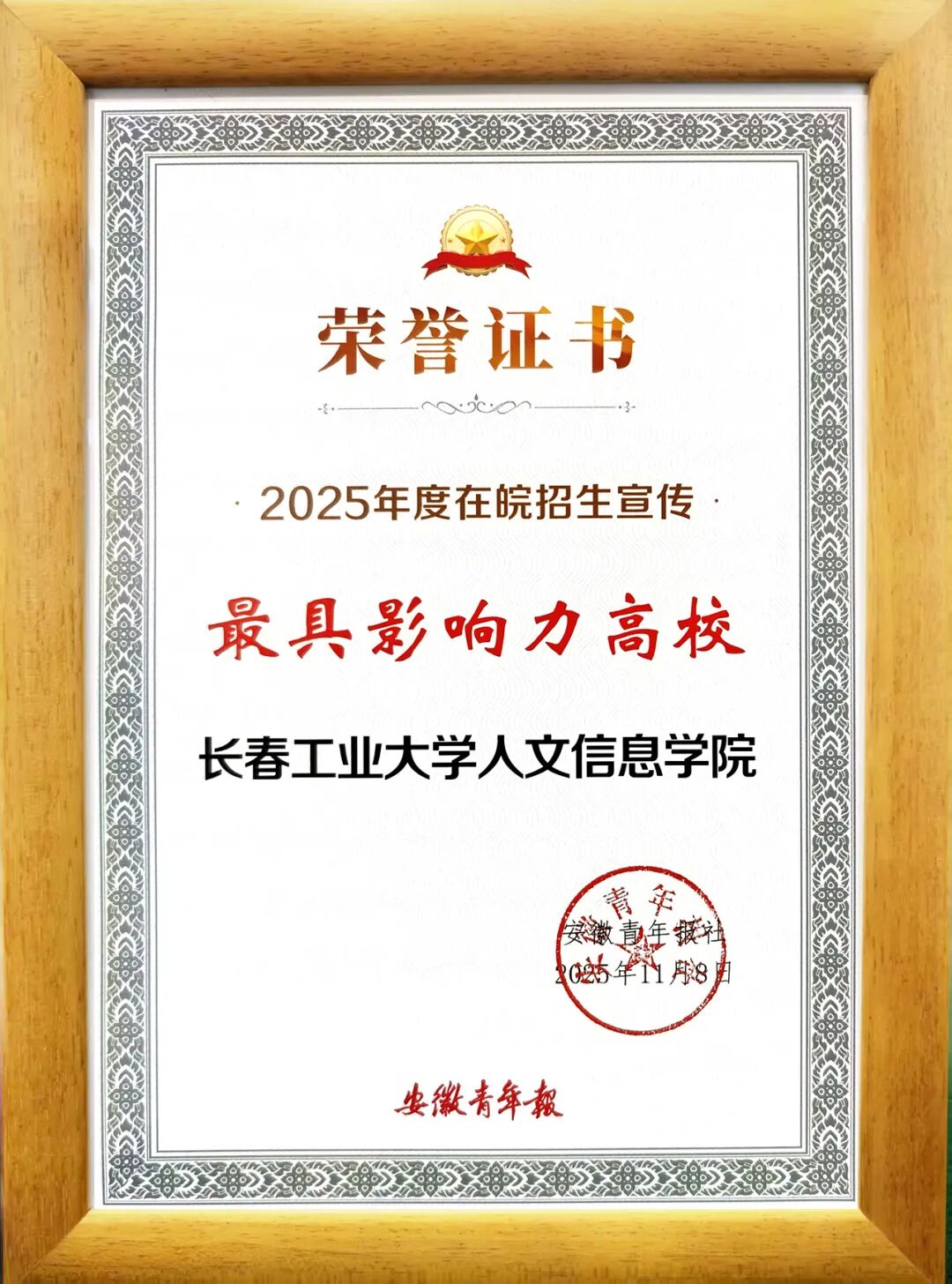 我校荣获“2025年度在皖招生宣传最具影响力高校”称号
